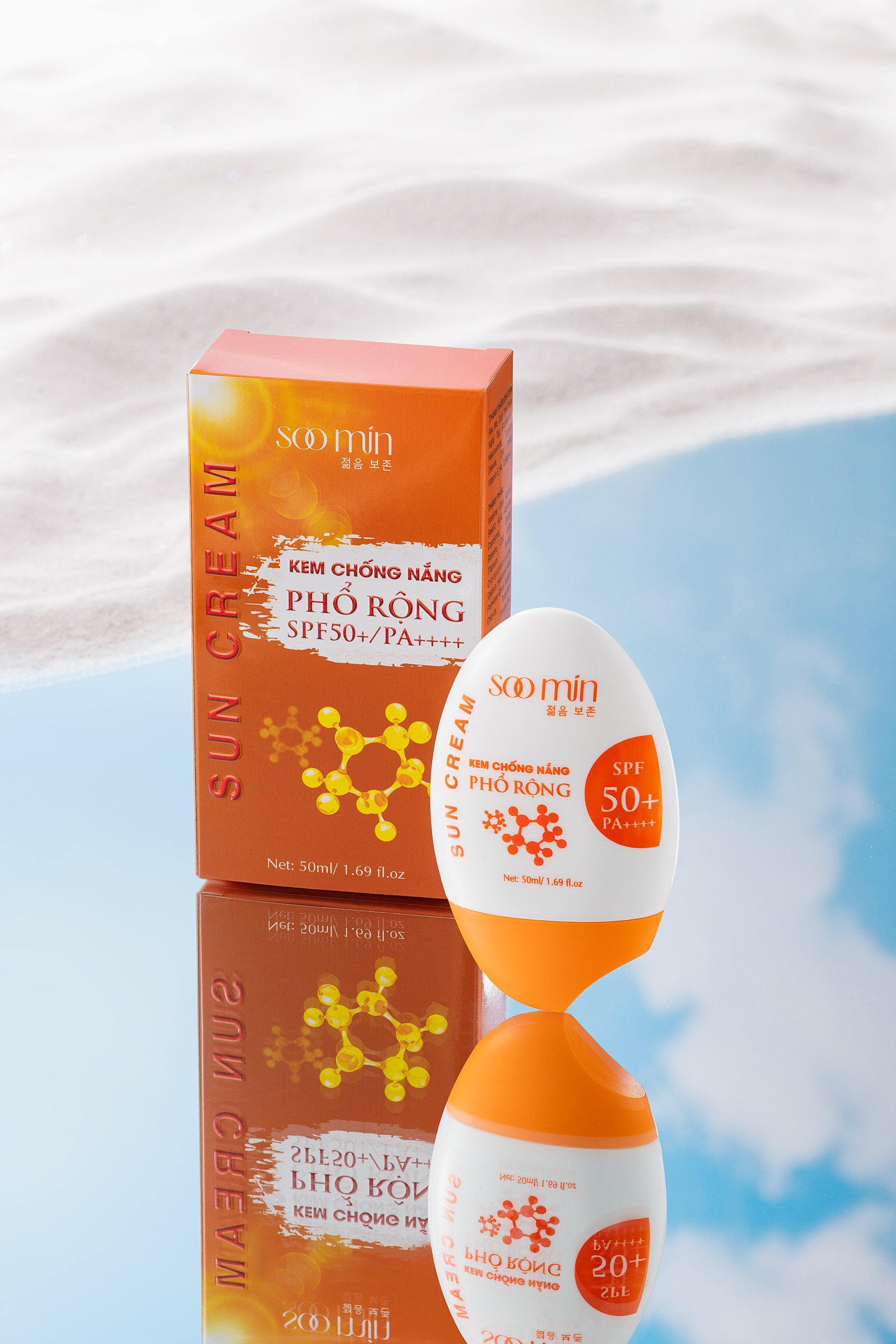Kem chống nắng phổ rộng soo min với chỉ số chống nắng SPF50+ PA++++ giúp chống nắng, bảo vệ da hiệu quả trước tia UVA và UVB từ ánh nắng mặt trời